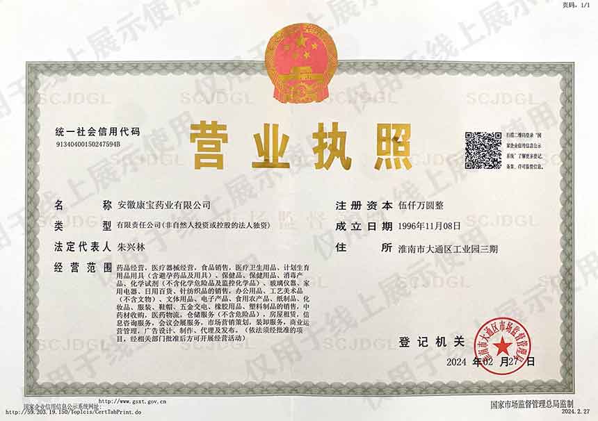 公司地址:安徽省淮南市大通區大通工業園三期淮南康寶藥業有限公司