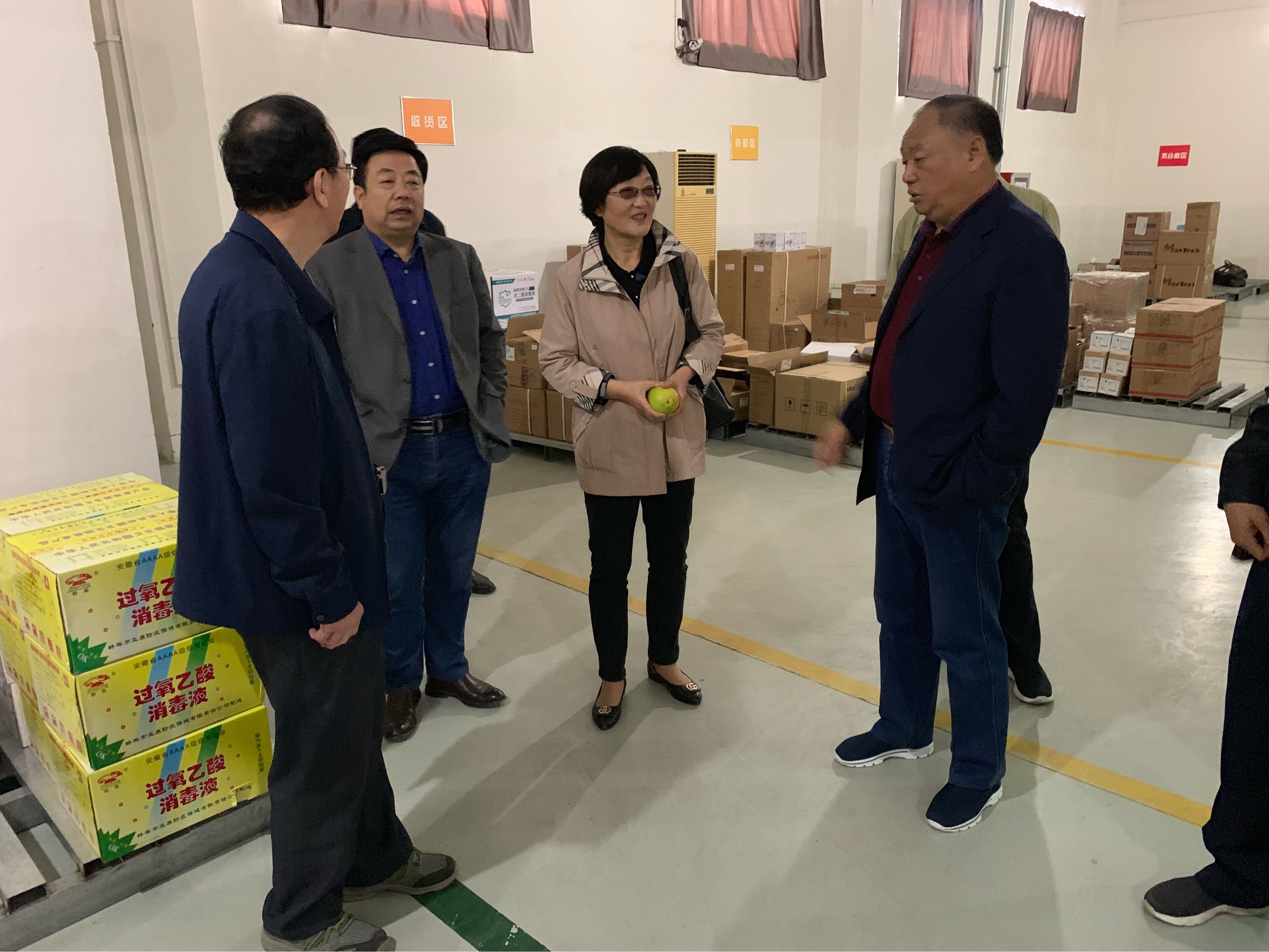 老領(lǐng)導(dǎo)楊愛光一行在江鴻方董事長陪同下,饒有興致地參觀了康寶藥業(yè)公司的庫房。